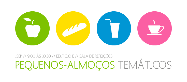 O ISEP organiza nos próximos meses os “pequenos-almoços temáticos”, num ambiente informal, pretende promover o diálogo e a troca de ideias e conhecimentos sobre assuntos transversais do nosso quotidiano, sendo os estes moderados por especialista na área.