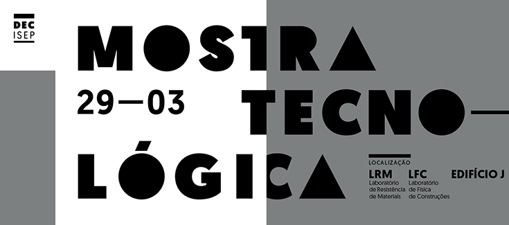 O Departamento de Engenharia Civil (DEC) do ISEP está a promover a primeira edição da “Mostra Tecnológica”, a decorrer a 29 de março, entre as 11:00 e as 17:30 horas, no edifício J, junto aos Laboratórios de Resistência de Materiais e de Física das Construções e Topografia.