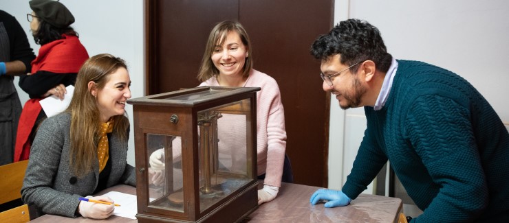 Os estudantes analisaram vários instrumentos do museu das áreas da química, física e mecânica, aplicando o método de análise proposto pelos formadores.