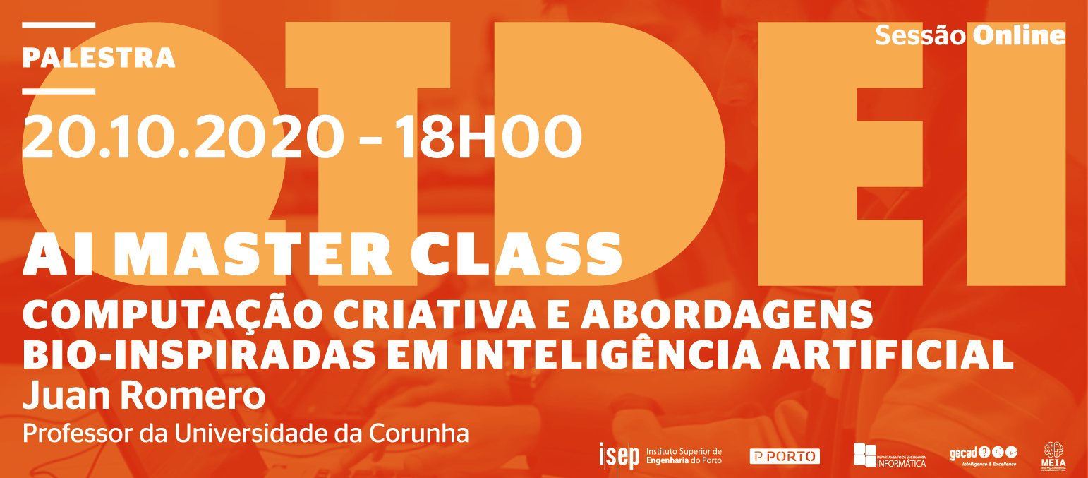 No dia 20 de outubro, pelas 18h00, vai realizar-se a Palestra “Computação Criativa e Abordagens bio-inspiradas em Inteligência Artificial” (IA).