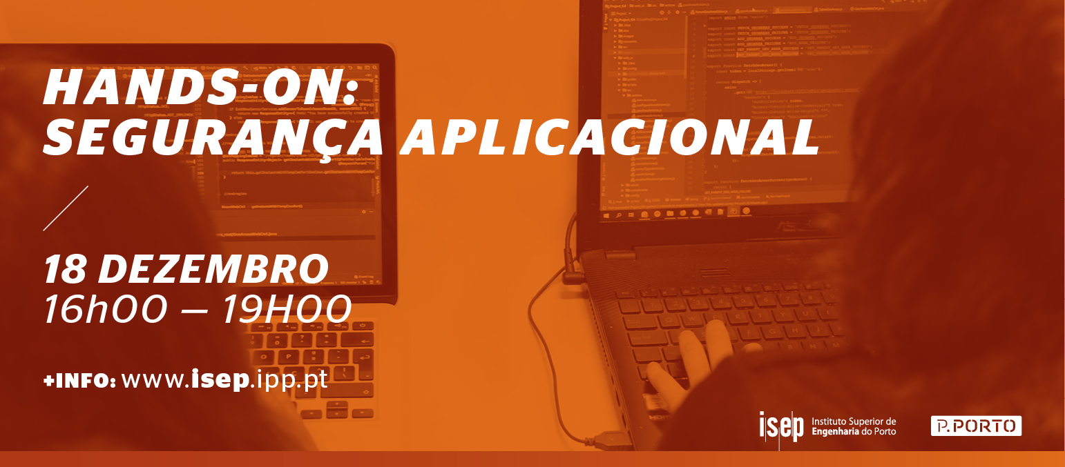 No dia 18 de dezembro, das 16h00 às 19h00, vai realizar-se uma sessão Hands-On sobre segurança aplicacional, através da plataforma Microsoft Teams.