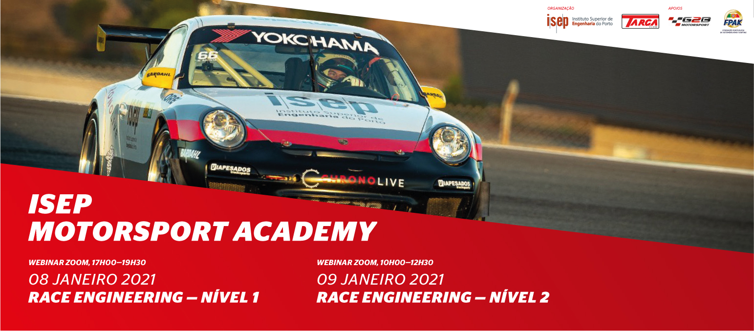 Nos dias 8 e 9 de janeiro, a ISEP Motorsport Academy vai realizar dois webinars, na plataforma Zoom, sobre Race Engineering.