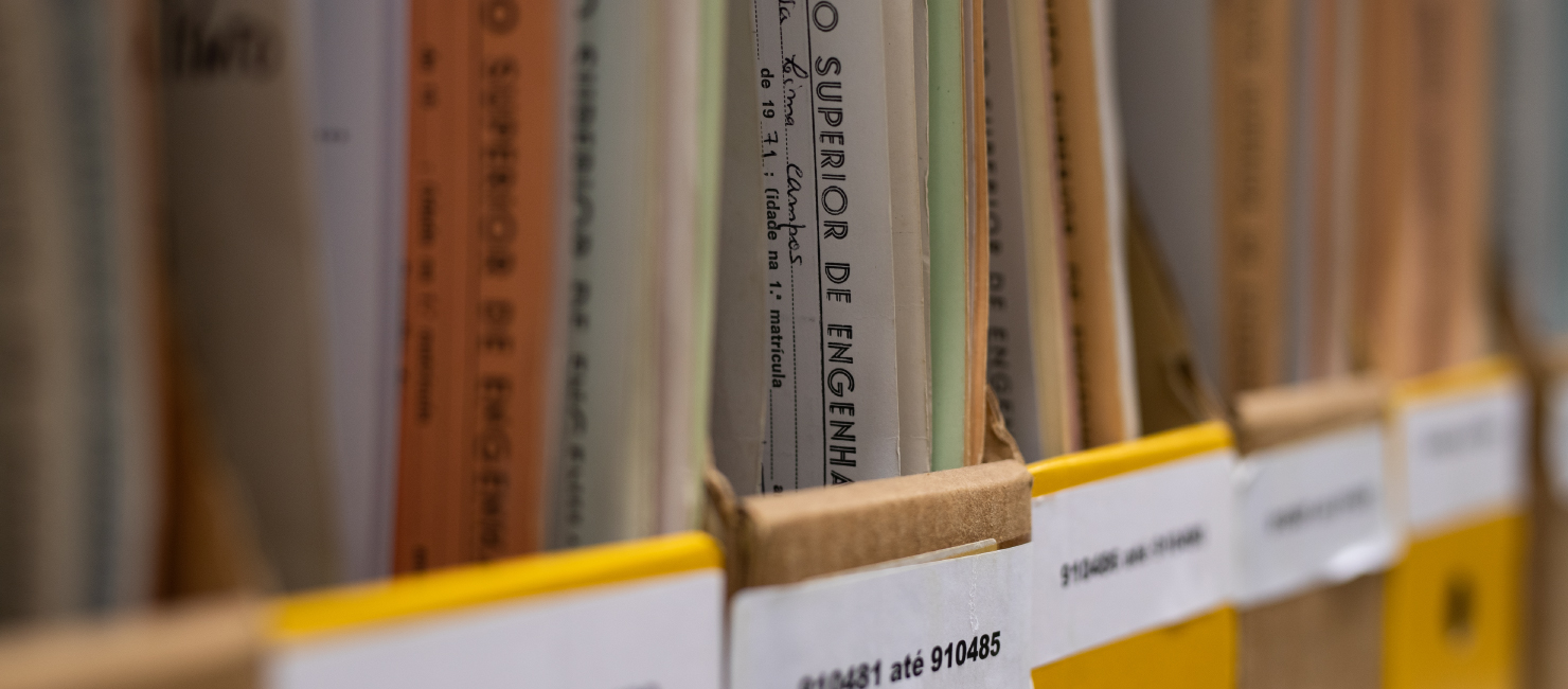 Este espaço preserva também pautas, livros de termos, pedidos de reconhecimento de grau obtido no estrangeiro e processos de estudantes em mobilidade Erasmus In.