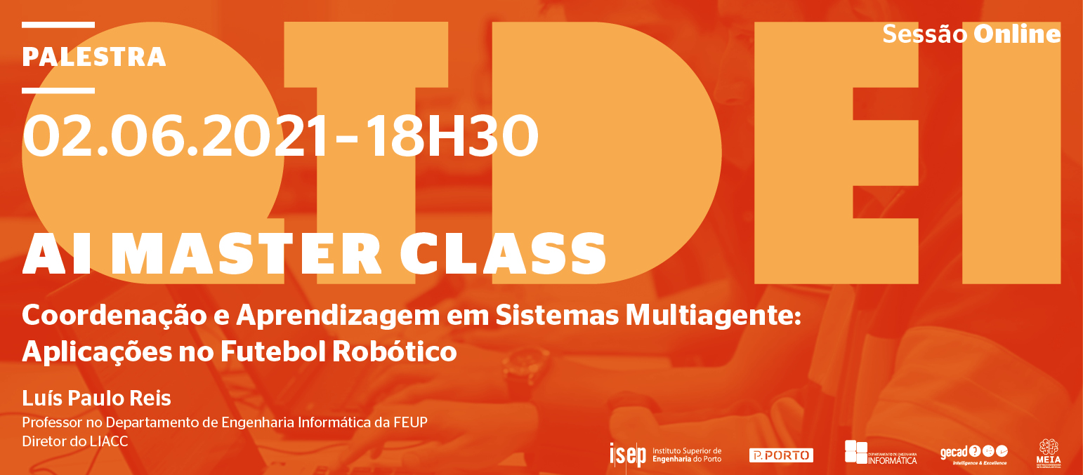 No dia 2 de junho, às 18h30, vai realizar-se a palestra AI Master Class «Coordenação e Aprendizagem em Sistemas Multiagente: Aplicações no Futebol Robótico».