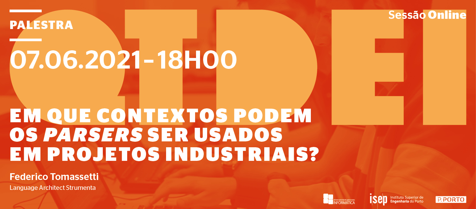 No próximo dia 7 de junho, às 18h00 será realizada a palestra «Em que contextos podem os parsers ser usados em projetos industriais?».