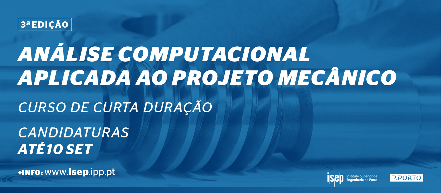 O Departamento de Engenharia Mecânica (DEM) do ISEP vai realizar mais uma edição do curso de formação «Análise Computacional Aplicada ao Projeto Mecânico - ACAPMed3», em regime presencial, entre 15 e 24 de setembro.