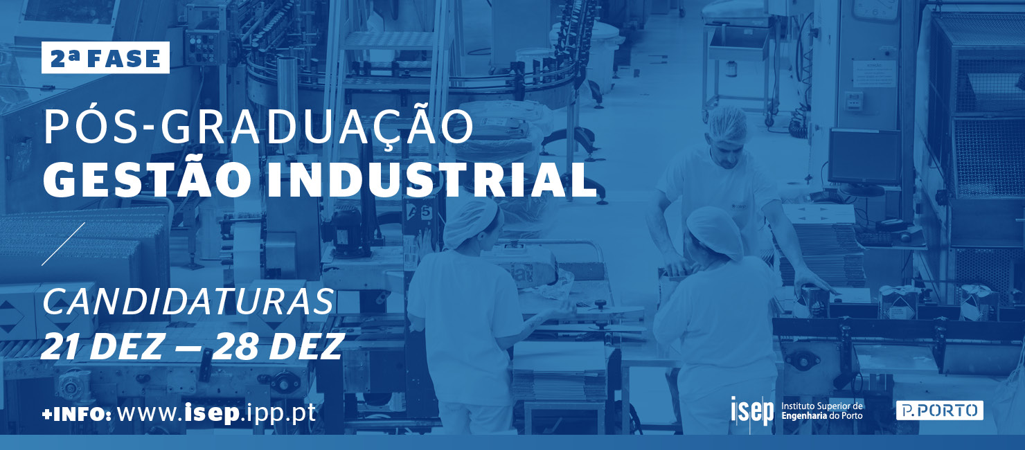 Estão abertas as candidaturas (2.ª fase) para a Pós-Graduação em Gestão Industrial, de 21 a 28 de dezembro.