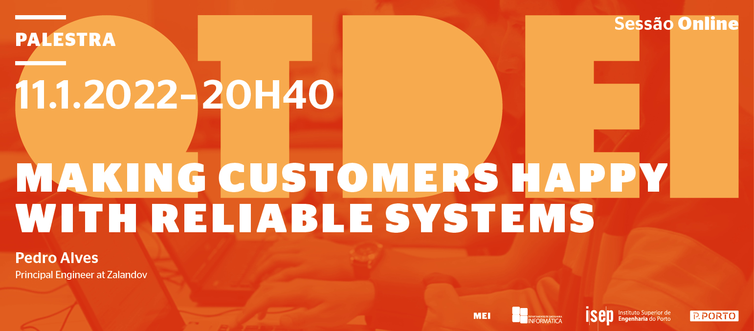 No dia 11 de janeiro, às 20h40, realiza-se a palestra «Making Customers Happy With Reliable Systems», com Pedro Alves (Principal Engineer @ Zalando).