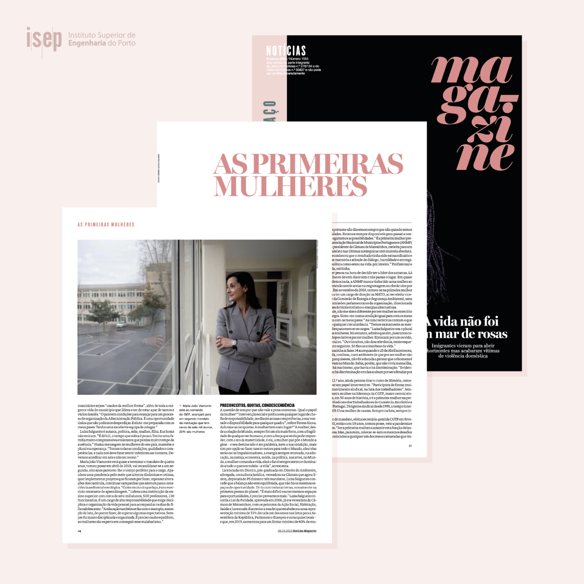 Para assinalar o Dia Internacional da Mulher, a revista Notícias Magazine dedica a edição desta semana, a mulheres que fazem História. Maria João Viamonte, presidente do ISEP, é destacada como a primeira mulher à frente da instituição em 170 anos de existência.