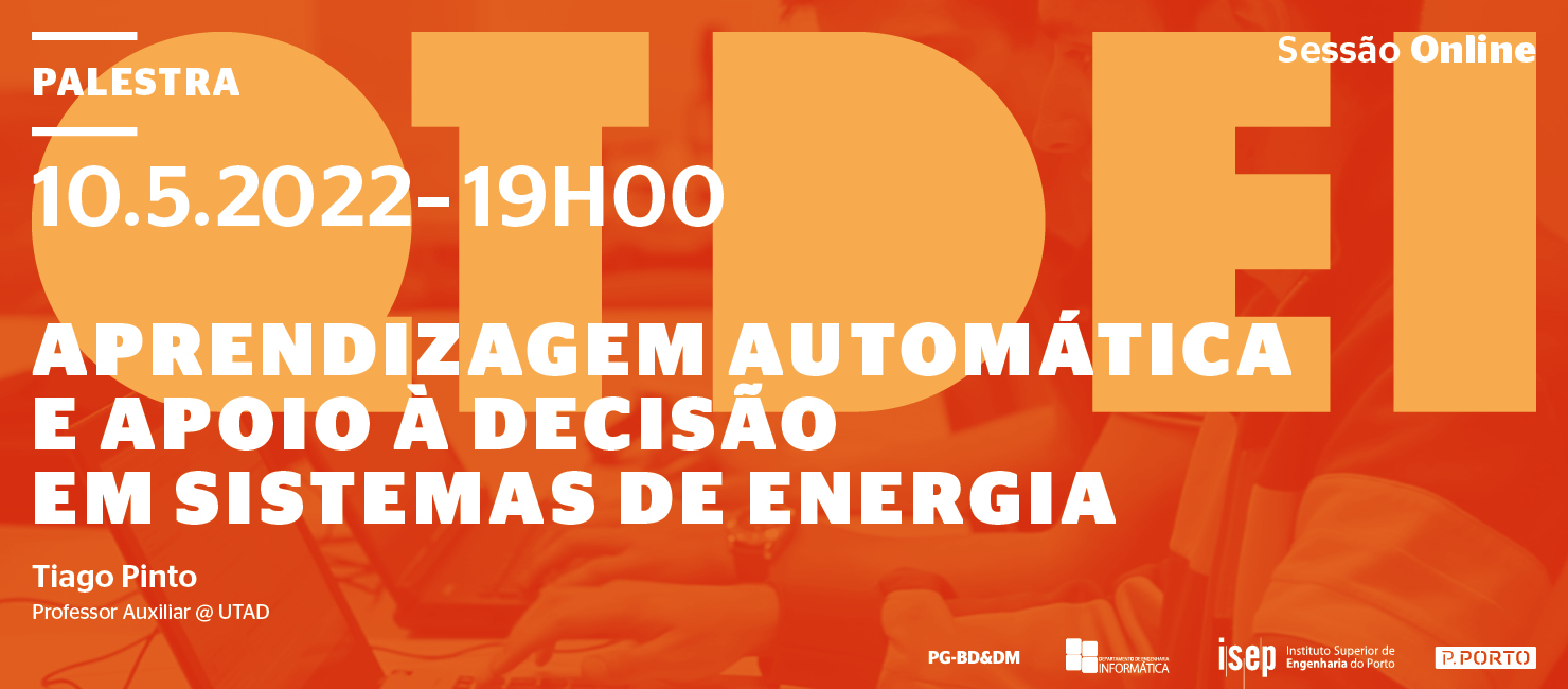 No próximo dia 10 de maio (terça-feira), às?19h00, o DEI convida à participação na Palestra – “Aprendizagem automática e apoio à decisão em sistemas de energia”.
