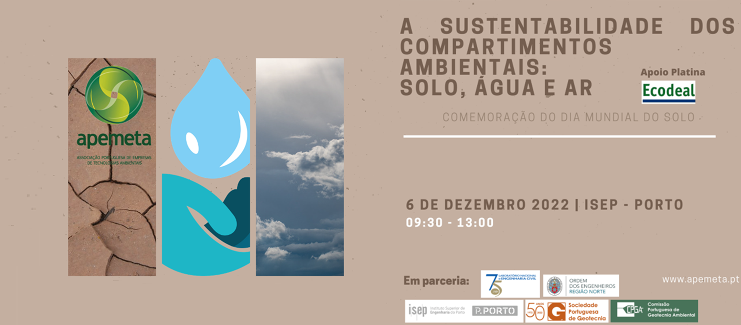 O evento, que pretende assinalar o Dia Mundial do Solo, é organizado pela Associação Portuguesa de Empresas de Tecnologias Ambientais (APEMETA) em parceria com o ISEP, o Laboratório Nacional de Engenharia Civil (LNEC), a Ordem dos Engenheiros – Região Norte (OERN), a Sociedade Portuguesa de Geotecnia (SPG) e a Comissão Portuguesa de Geotecnia Ambiental (CPGA).