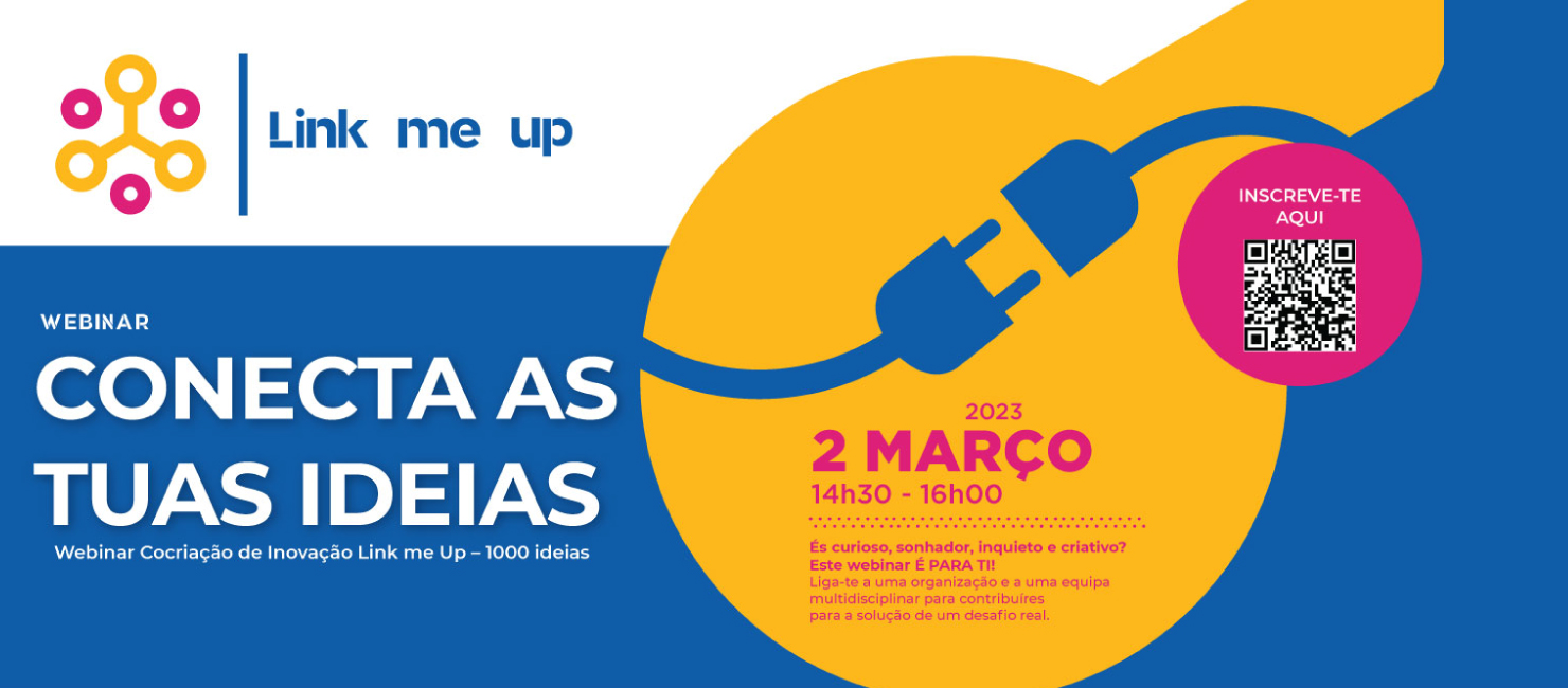 O Link me up vai abrir de novo as portas para criares e desenvolveres as tuas ideias no mundo real! Inscreve-te já no webinar de esclarecimento deste projeto de Cocriação de Inovação Link me Up – 1000 ideias, que decorre no dia 2 de março, das 14h30 às 16h00.