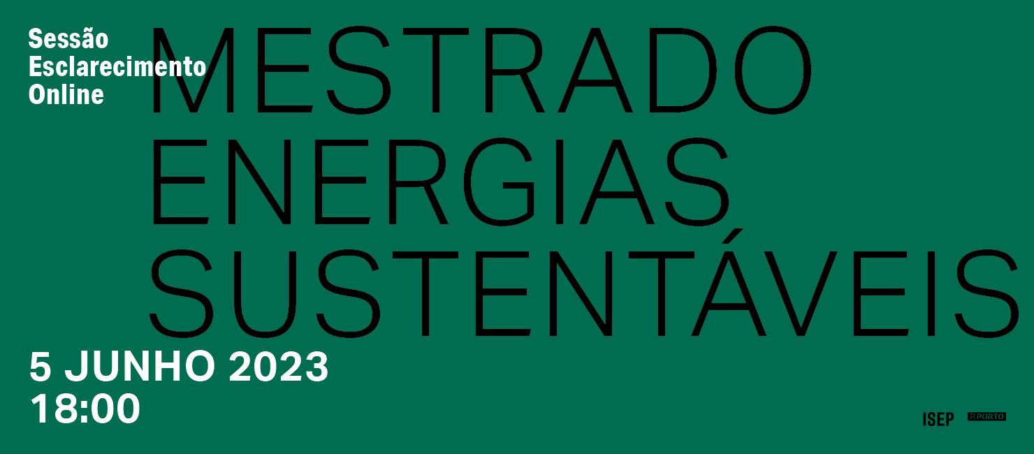 Realiza-se, no próximo dia 5 de junho, às 18h00, uma sessão de apresentação e esclarecimentos, do Mestrado em Energias Sustentáveis (MES) do Instituto Superior de Engenharia do Porto (ISEP).