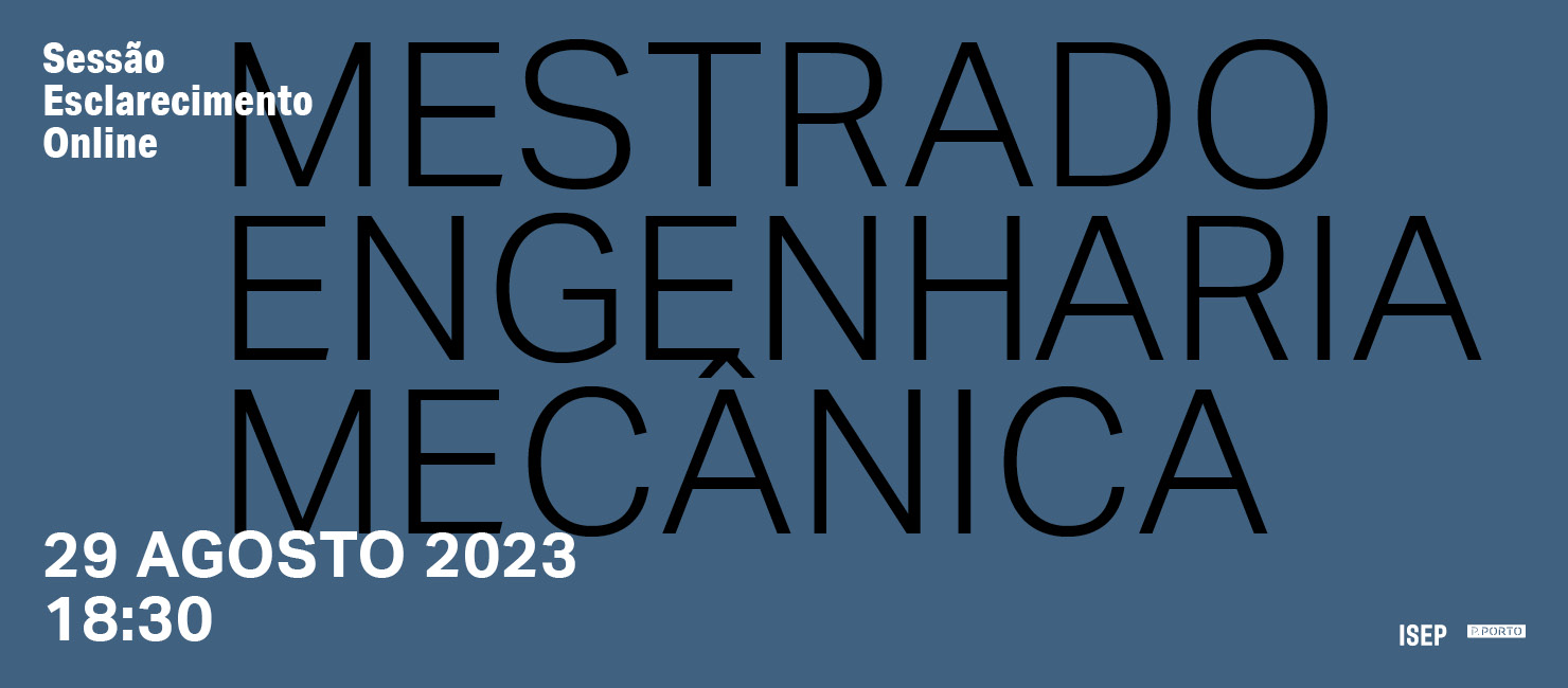 Decorre, no próximo dia 29 de agosto, às 18h30, uma sessão de apresentação e esclarecimentos online, via Zoom, do Mestrado em Engenharia Mecânica (MEM) do Instituto Superior de Engenharia do Porto (ISEP).