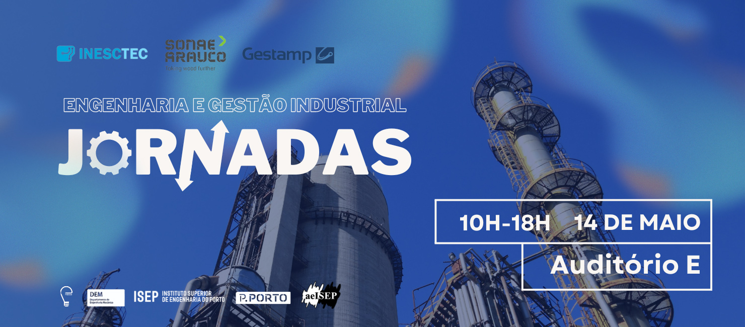 No próximo dia 14 de maio, das 10h00 às 18h00, irá decorrer a 1ª Edição das Jornadas de Engenharia e Gestão Industrial, com o tema “Transição digital: o papel do Engenheiro Industrial no século XXI”, no Auditório Vítor Santos do Instituto Superior de Engenharia do Porto (ISEP).