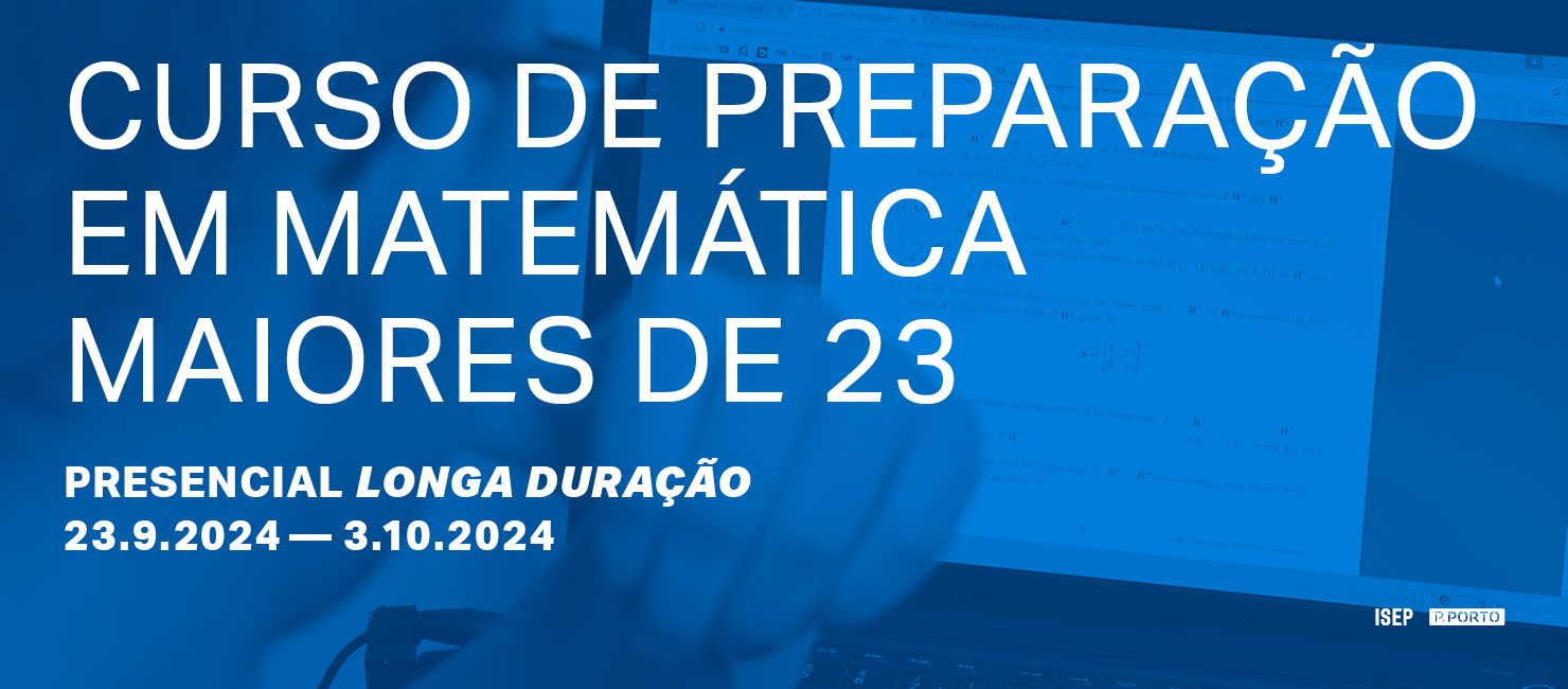 Os Cursos de Preparação de Matemática para Maiores de 23, têm como objetivo preparar os estudantes que pretendam realizar a prova de Matemática, através do concurso especial para Maiores de 23, que possibilita o acesso aos cursos de Licenciatura e Cursos Técnicos Superiores Profissionais (CTeSP) das Escolas do Politécnico do Porto.
