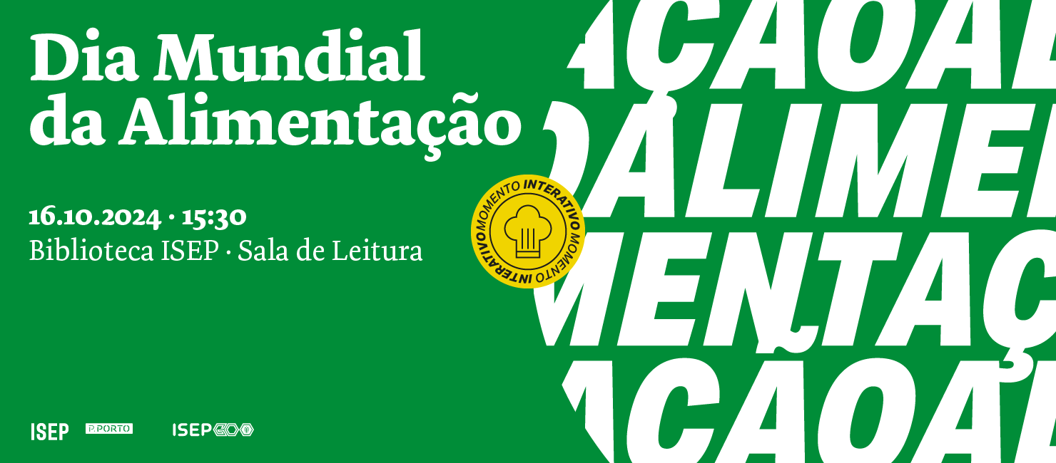 A Biblioteca, em parceria com o Gabinete de Orientação do ISEP, irão dinamizar no próximo dia 16 de outubro (quarta-feira), pelas 15h30 na sala de leitura da Biblioteca, uma sessão com o objetivo de enquadrar a origem do Dia Mundial da Alimentação. Permitindo assim, desconstruir e desmistificar as dificuldades da alimentação em situações de convívios sociais ocasionais, alertando ainda, para um estilo de vida segundo o padrão alimentar mediterrânico.
