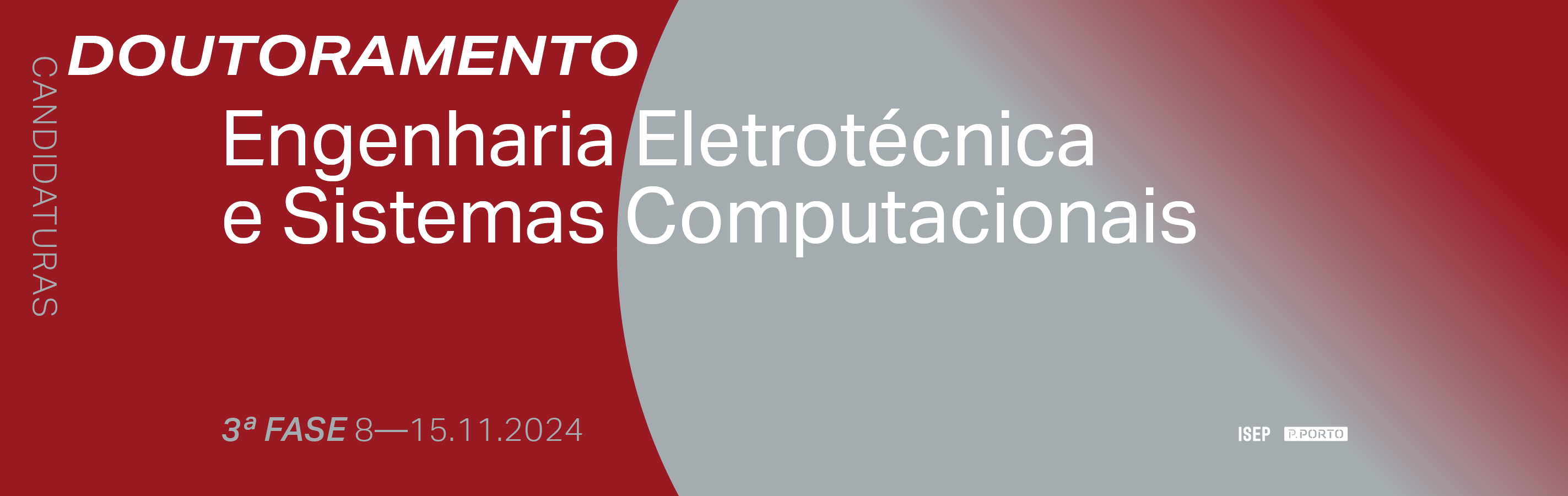 De 8 a 15 de novembro, vai decorrer a 3.ª fase de candidaturas para o Doutoramento em Engenharia Eletrotécnica e Sistemas Computacionais do Instituto Superior de Engenharia do Porto (ISEP), o segundo doutoramento do ISEP aprovado pela Agência de Avaliação e Acreditação do Ensino Superior (A3ES).