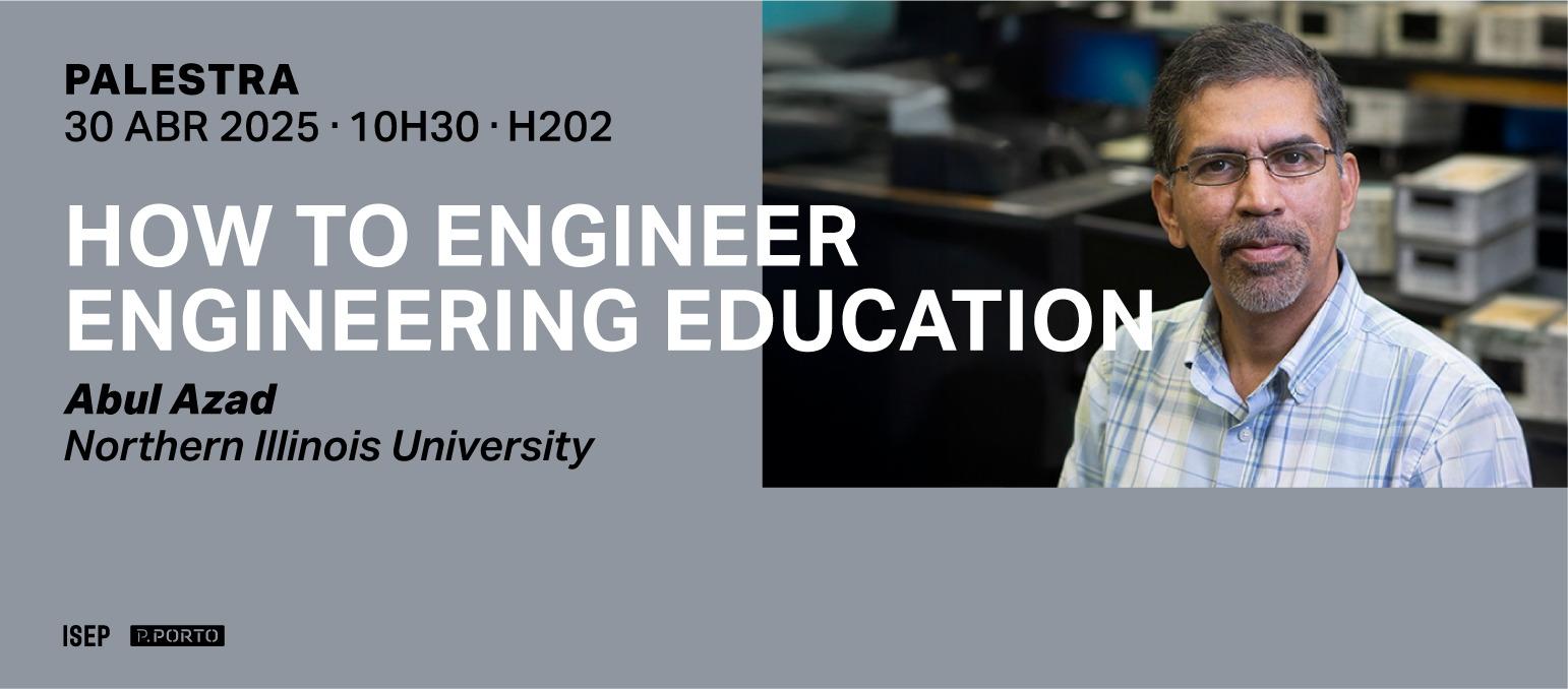 No próximo dia 30 de abril, pelas 10h30, irá decorrer, na sala H202 do Instituto Superior de Engenharia do Porto (ISEP), a palestra “Learning Engineering: How to Engineer Engineering Education”.