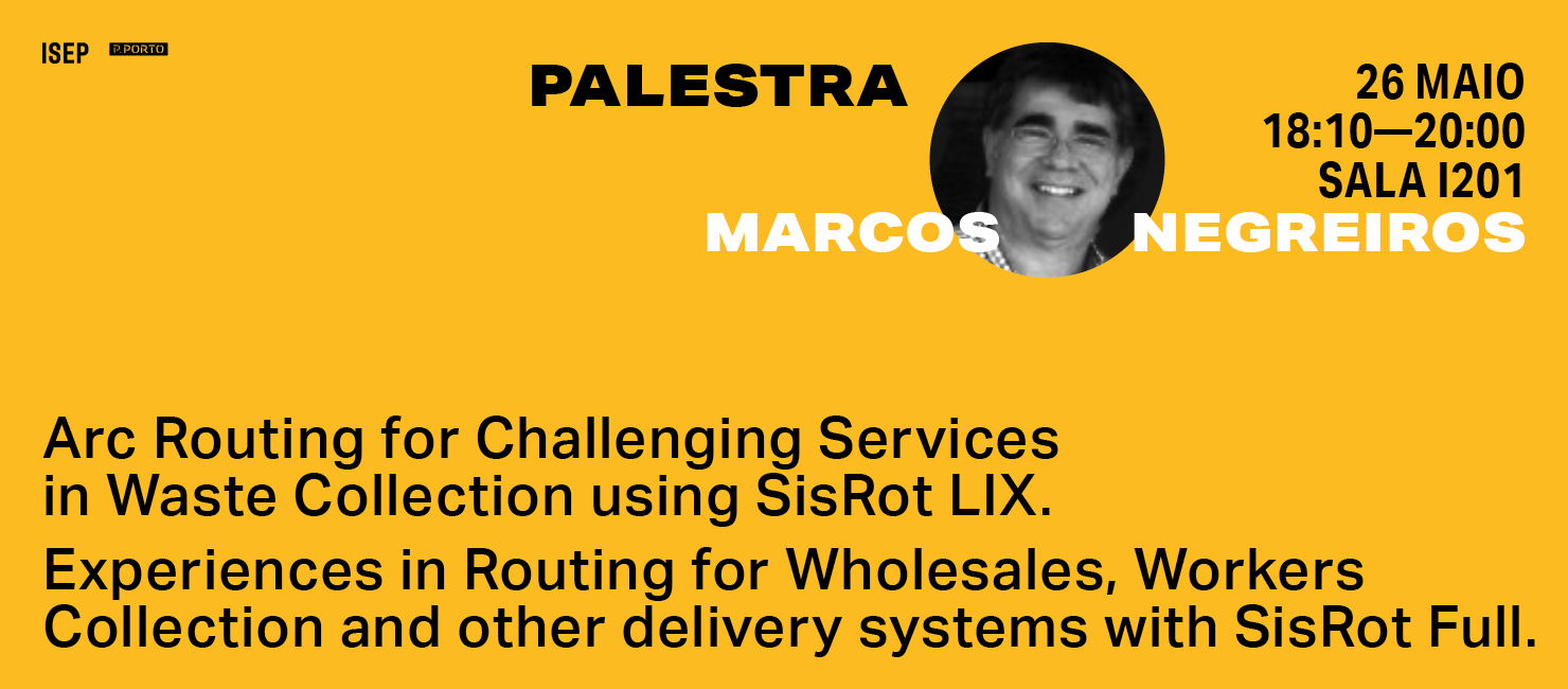 A sessão terá como temas principais "Arc Routing for Challenging Services in Waste Collection using SisRot LIX" e “Experiences in Routing for Wholesales, Workers Collection and other delivery systems with SisRot Full”. A apresentação irá tocar em tópicos como Roteamento e Vehicle Routing Problem (VRP) com a técnica ARC routing.