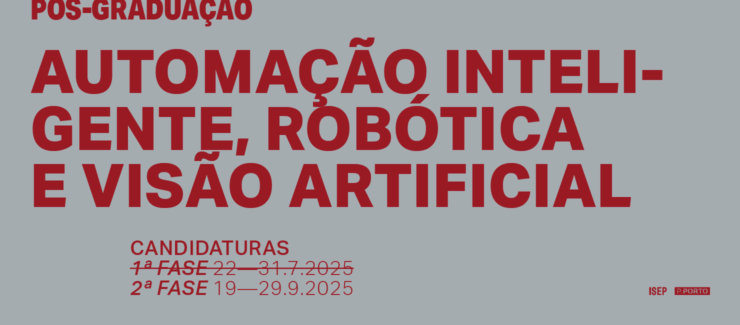 Vai decorrer, de 19 a 29 de setembro, a 2.ª fase de candidaturas para do curso de pós-graduação em Automação Inteligente, Robótica e Visão Artificial do Instituto Superior de Engenharia do Porto (ISEP).